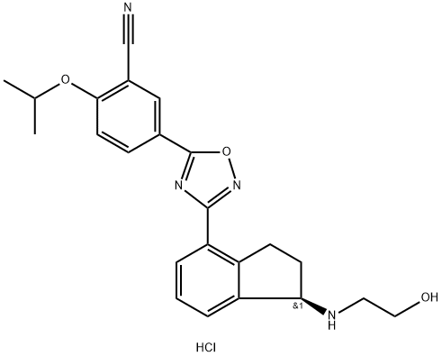 英文名稱:Benzonitrile, 5-[3-[(1S)-2,3-dihydro-1-[(2-hydroxyethyl)aMino]-1H-inden-4-yl]-1,2,4-oxadiazol-5-yl]-2-(1-Methylethoxy)- (HCl salt) CAS號(hào):1306760-85-9 分子式:C23H25ClN4O3 分子量:440.93